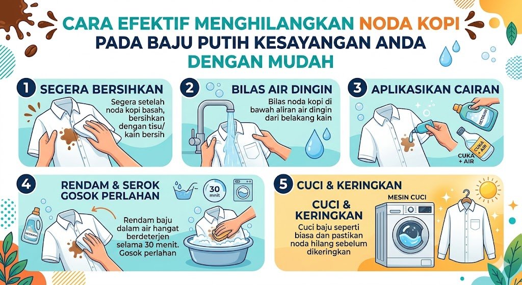 Menikmati secangkir kopi di pagi hari merupakan rutinitas yang menyenangkan bagi banyak orang namun situasi bisa berubah menjadi menyebalkan ketika tetesan kopi mengenai baju putih kesayangan Anda. Noda kopi yang berwarna kecokelatan seringkali dianggap sulit dihilangkan karena mengandung tanin yang cepat meresap ke dalam serat kain. Kunci utama dalam menangani masalah ini adalah kecepatan karena semakin lama noda dibiarkan mengering maka akan semakin sulit untuk dibersihkan secara total. Jangan panik dan jangan langsung menggosok noda tersebut karena tindakan menggosok justru akan membuat cairan kopi masuk lebih dalam ke pori-pori kain dan memperlebar area yang kotor.