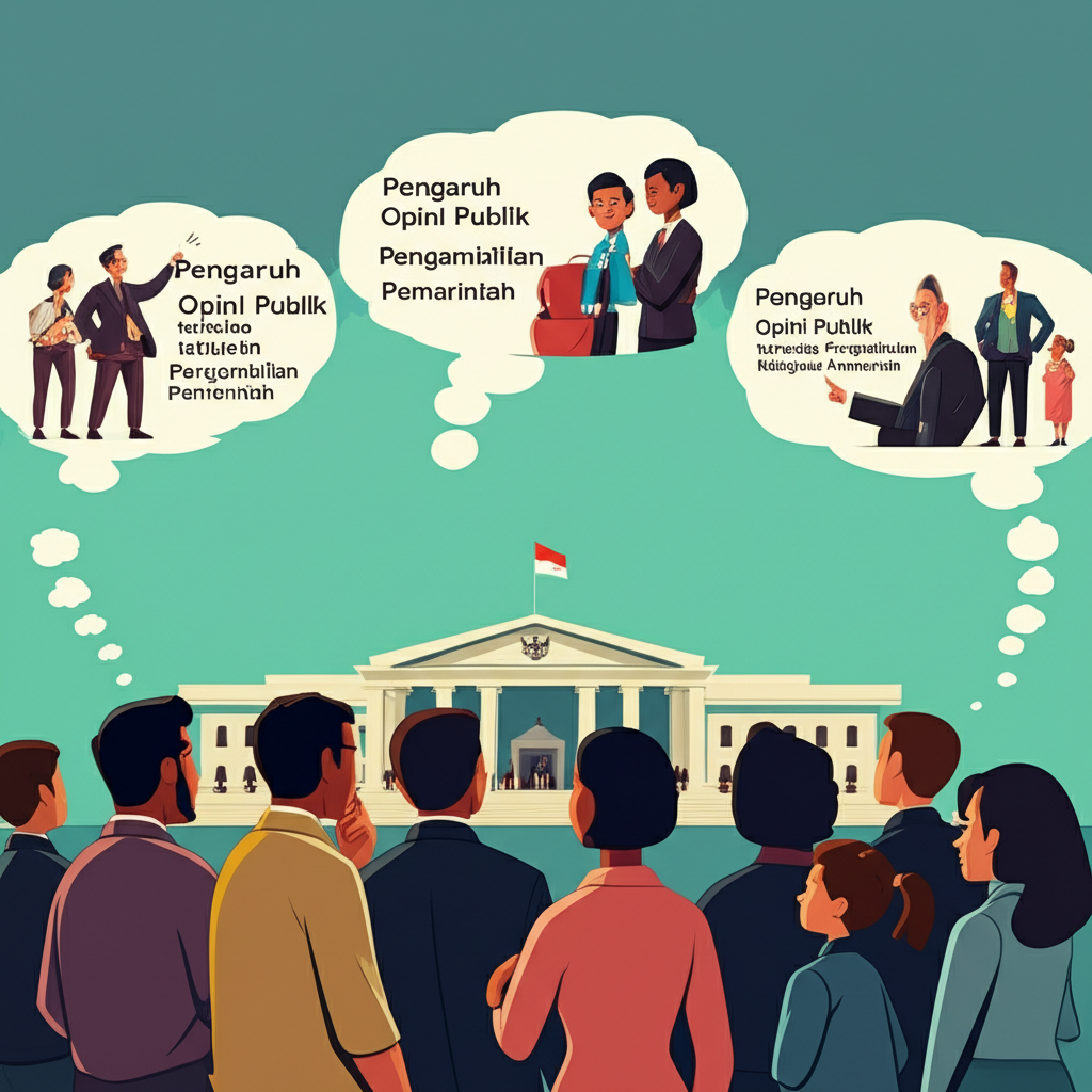 Opini publik berperan sebagai barometer akuntabilitas dan cermin aspirasi masyarakat. Ia memaksa pemerintah untuk tetap responsif dan transparan. Namun, pengaruh ini tidak selalu tanpa tantangan. Terkadang, desakan opini publik bisa mengarah pada kebijakan populis yang mengedepankan popularitas jangka pendek daripada keberlanjutan atau efektivitas jangka panjang. Diperlukan kebijaksanaan pemerintah untuk menyeimbangkan antara mendengarkan gema rakyat dan merumuskan keputusan yang rasional serta berbasis data demi kebaikan bersama.